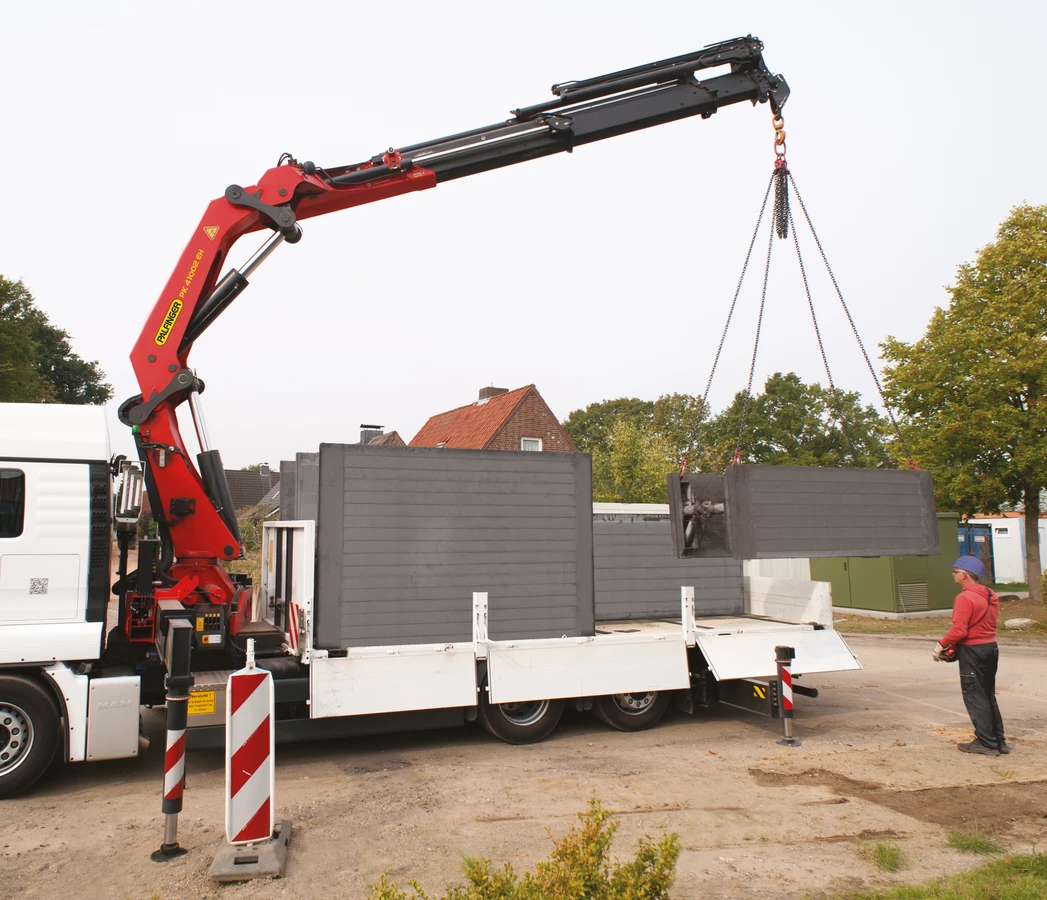The patented PALFINGER “AOS” oscillation suppression system cancels out vibrations and blows that occur during crane operation. Any “post-oscillation” is prevented through rapid braking or load changes. The result is a decisive increase to safety in crane operation for employees, the load and building.