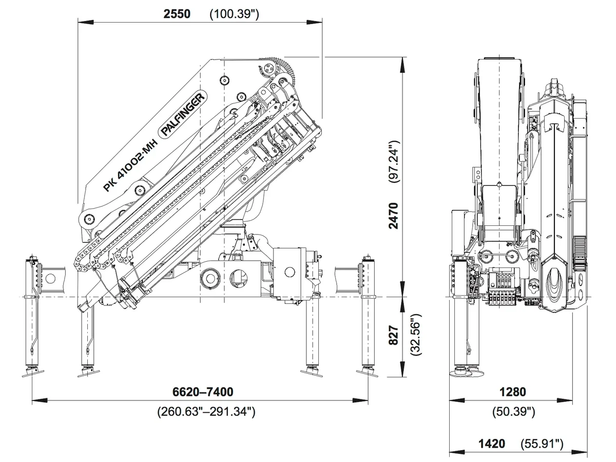 - Pressure sensors on the cylinders send information on the capacity utilisation of the crane to the PALTRONIC.