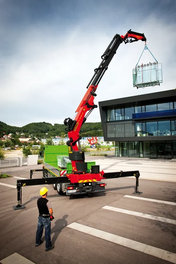 The patented PALFINGER “AOS” oscillation suppression system cancels out vibrations and blows that occur during crane operation. Any “post-oscillation” is prevented through rapid braking or load changes. The result is a decisive increase to safety in crane operation for employees, the load and building.
