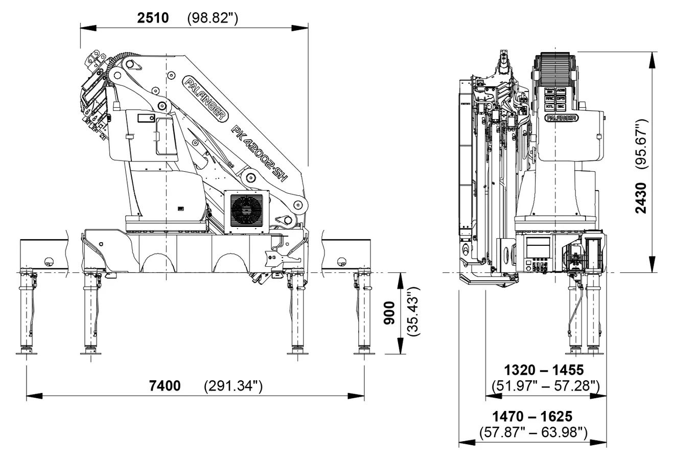 - Pressure sensors on the cylinders send information on the capacity utilisation of the crane to the PALTRONIC.
