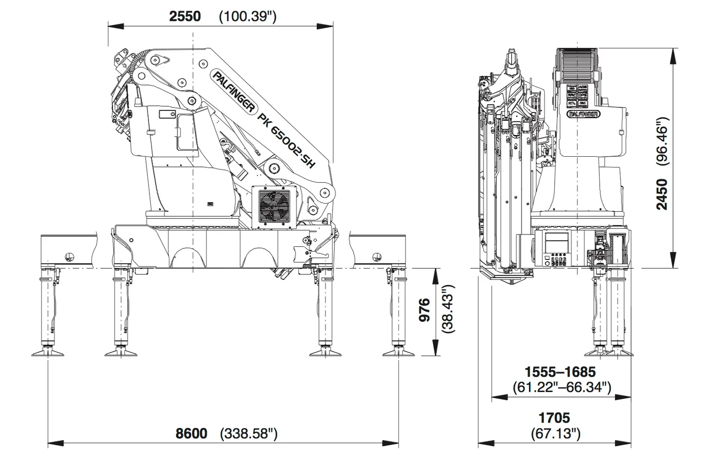 - Pressure sensors on the cylinders send information on the capacity utilisation of the crane to the PALTRONIC.