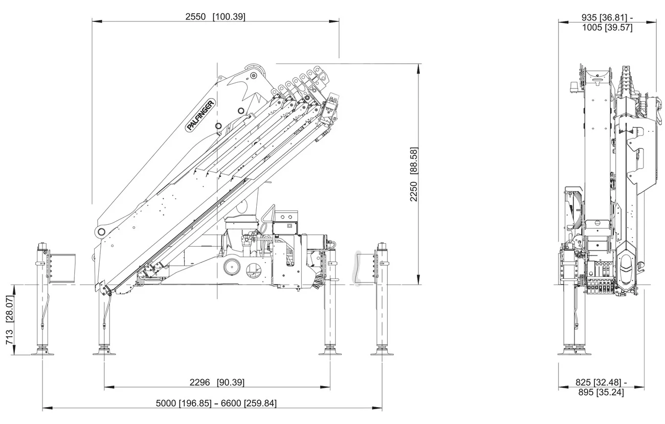 The outreaches stated are with a boom angle of 20° and are therefore not the maximum. When using mechanical boom extensions, the loads shown on the charts need to be reduced by the weight of these extensions.
