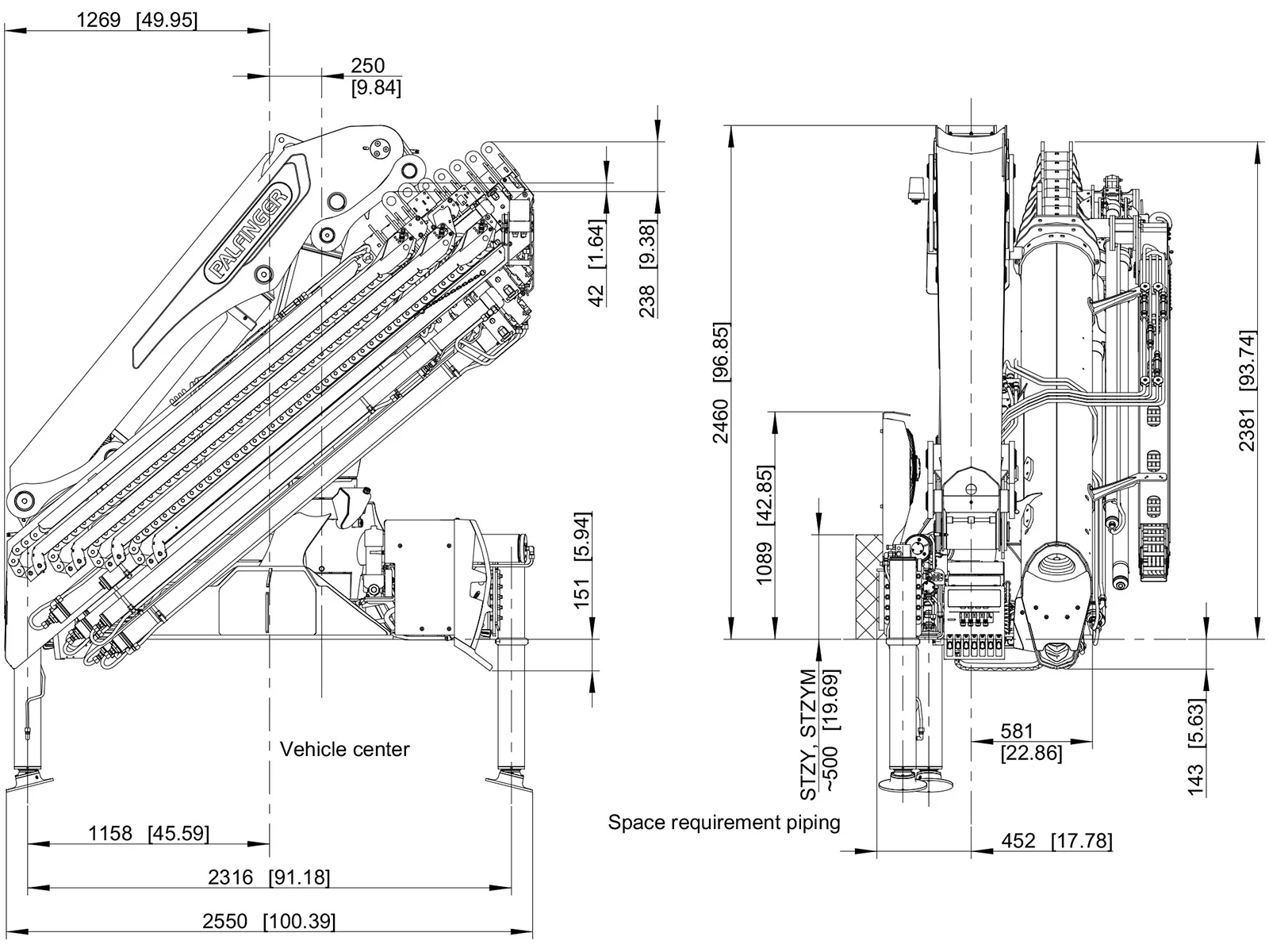- Pressure sensors on the cylinders send information on the capacity utilisation of the crane to the PALTRONIC.
